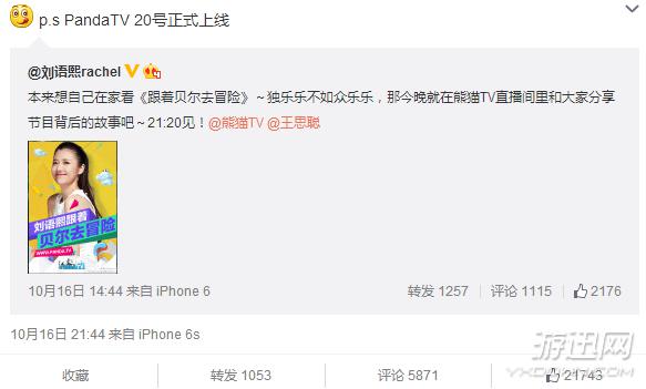 王思聰“熊貓TV”還未上線就已經(jīng)獲得了不少網(wǎng)友的關(guān)注,雖然可能大多數(shù)網(wǎng)友并沒有參與到內(nèi)測之中,但光看早前曝光的明星陣容,網(wǎng)友已經(jīng)表示:老公,跟定你了!而日前,王思聰轉(zhuǎn)發(fā)劉語熙的微博,并且確認(rèn)PandaTV將會在20號上線!
